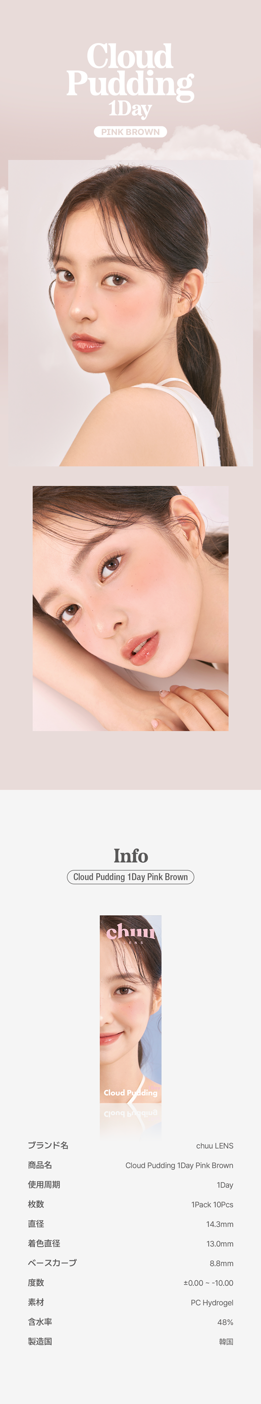 Chuu Lens New Cloud Pudding 1Day Pink brown (10P)