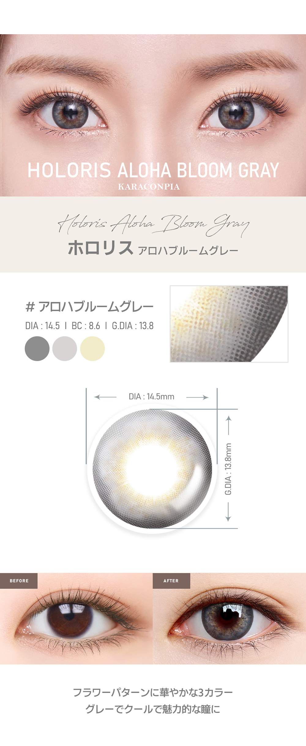 Lensme ALOHA BLOOM GRAY-月con