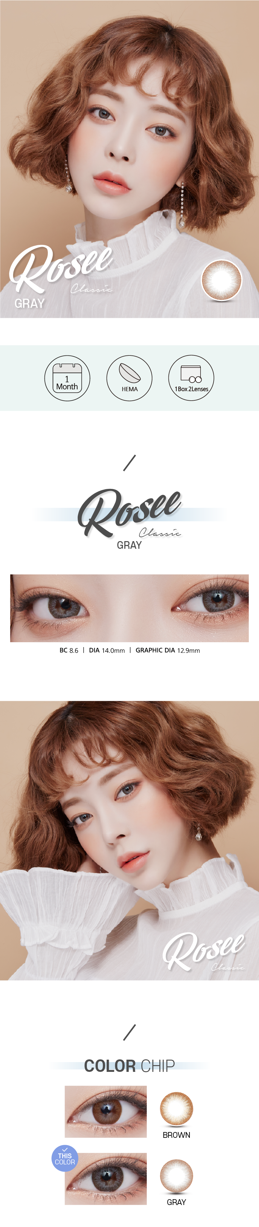 Lensvery Rosee Classic Gray - 月con (2p)