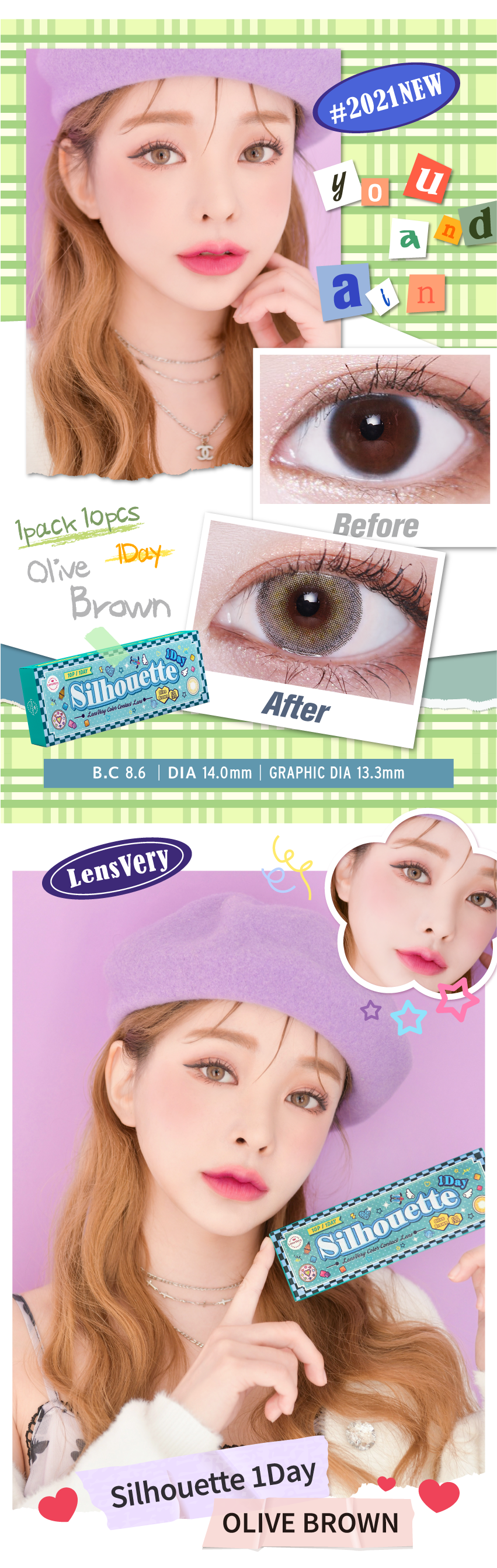 Lensvery Silhouette 1Day Olive Brown (10P)