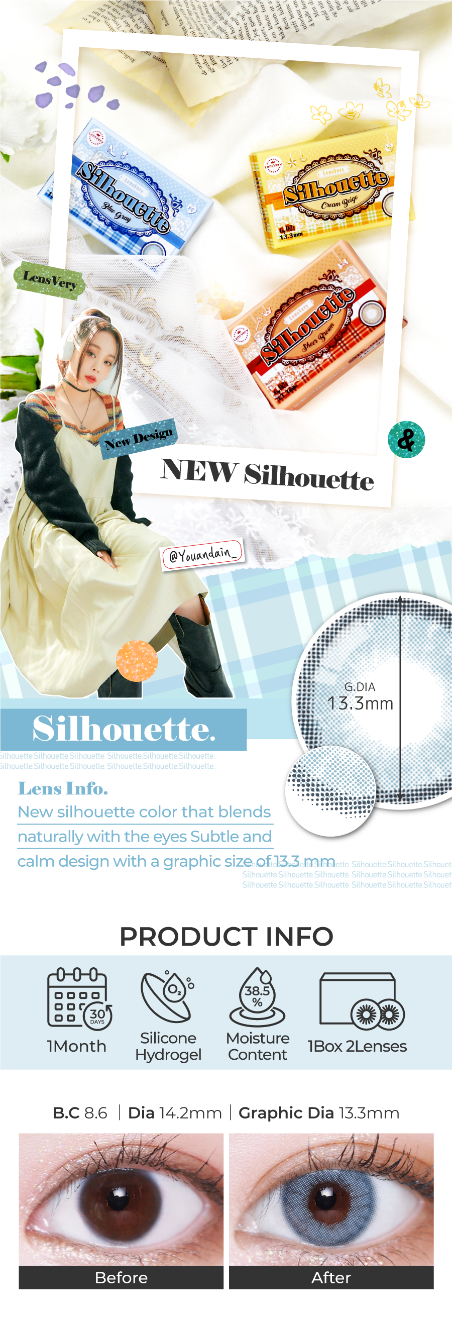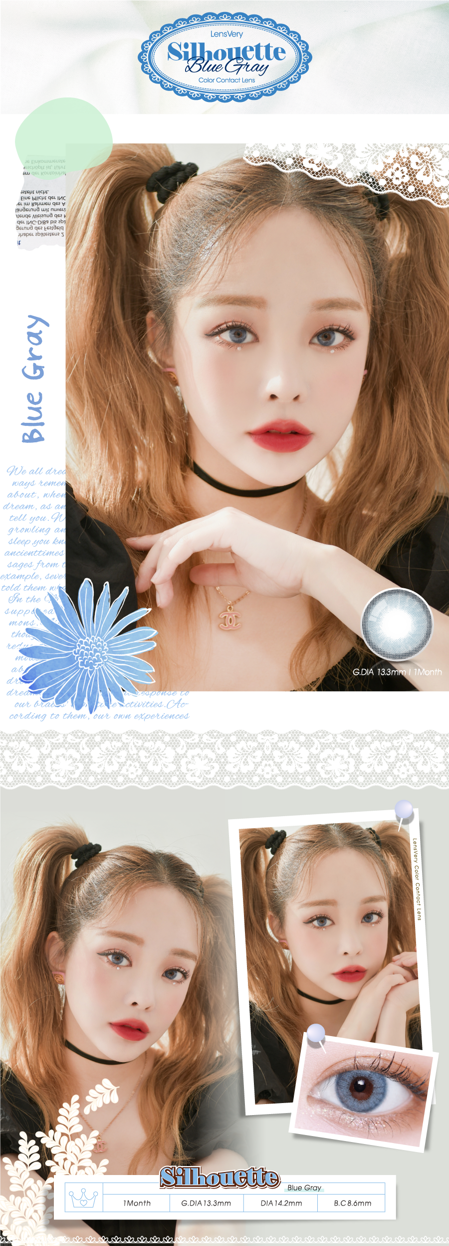 Lensvery Silhouette Blue Gray - 月con (2p)